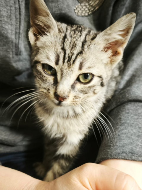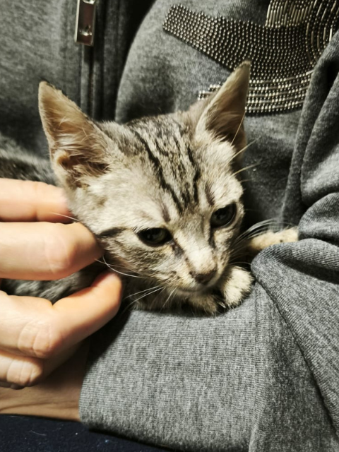 Bulut, ağzı yaralı ve çok zayıf bir haldeyken iş yerimizin önüne geldi. Yemek istiyordu ama yarasından ötürü yiyemiyordu. Veterinere götürdük; tedavisine başladık ve devam ediyoruz. Her geçen gün toparlıyor; yakında veterinerden çıkacak. Ancak hâlâ ufak olduğundan, tek başına sokakta ve soğukta kalmaması için ona bir yuva arıyoruz.