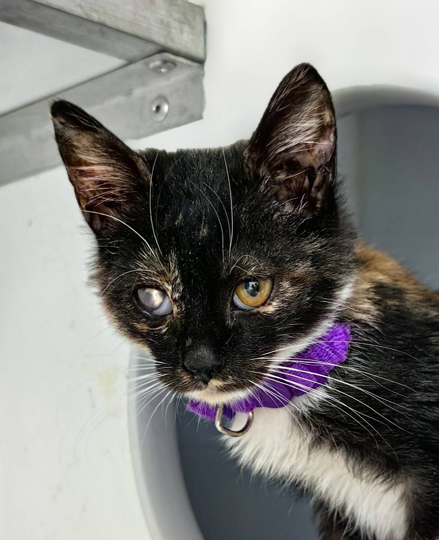 Sokakta, gözleri kötü durumda bulunmuş ve belediye barınağına bırakılmış.
