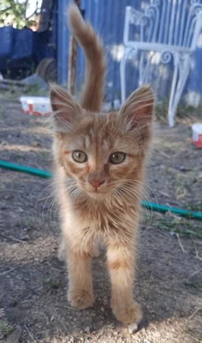 Bahçemizde, kardeşleriyle birlikte elimizde doğdu Kadayıf. Diğer dört kardeşi yuva buldu, kalan üç kardeşi ise hâlâ yuva arıyor. Bulunduğumuz mevki ana yol kenarında; çevrede hayvanlar var ve saldırgan olabiliyorlar. Kadayıf’ın iyi bir yuvada sağlıkla büyümesini ümit ediyoruz. Hiç hastalanmadı, ancak hiçbir aşısı yok. Tuvalet eğitimi var, kuru ve yaş mama yiyor.