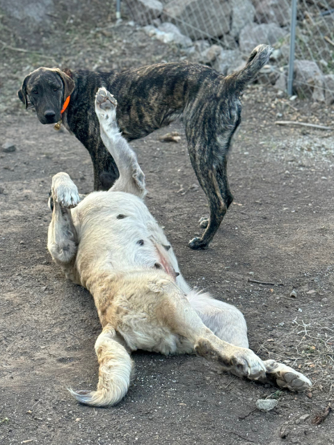 O yaz çıkan katliam yasası nedeniyle bakımevine gönderilmek yerine özel bir klinikte kısırlaştırılmış. Aynı bölgede, başka bir annenin terk ettiği iki dişi yavruya da süt annelik yaparak onları hayatta tutmuş. Yaklaşık iki yıldır bu koruma alanında yaşıyorlar. Tüm aşıları ile iç ve dış parazit uygulamaları düzenli olarak yapılmış durumda.