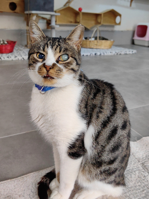 Görme engelli olduğu için belediyenin engelli kedi bakımevine bırakılmış.