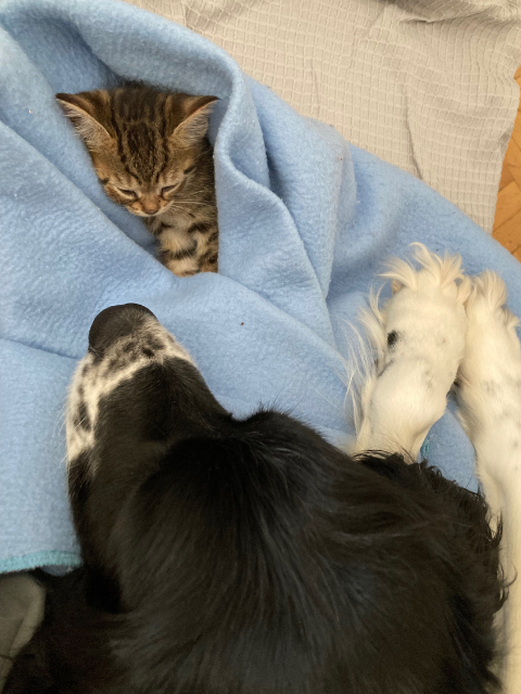 Yaş mama yiyor. Uykucu biri. Köpeklerle yaşamaya da alışabilir şu yaşında.