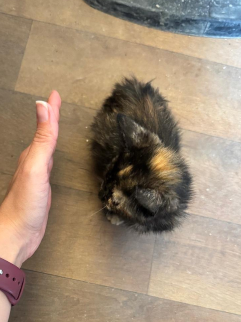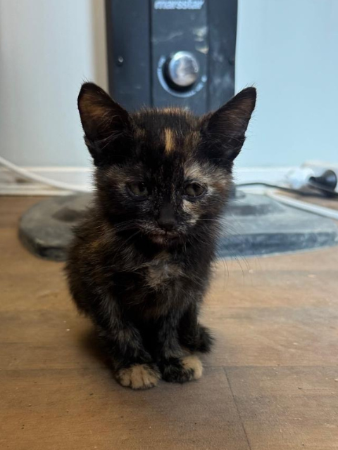 Tahmini 1,5 aylık. Uysal, sevecen ve kardeşleriyle birlikte yaşadığı için kedilere uyumlu.